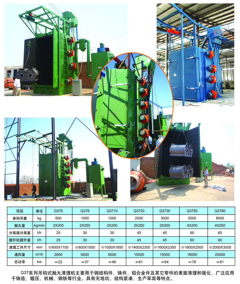 主要用于鋼結(jié)構(gòu)件、鑄件、鋁合金件及其他零件的表面清理和強(qiáng)化,廣泛應(yīng)用于鑄造、鍛壓、機(jī)械、鋼鐵等行業(yè)。具有無(wú)地坑、結(jié)構(gòu)緊湊、生產(chǎn)論高等特點(diǎn)。